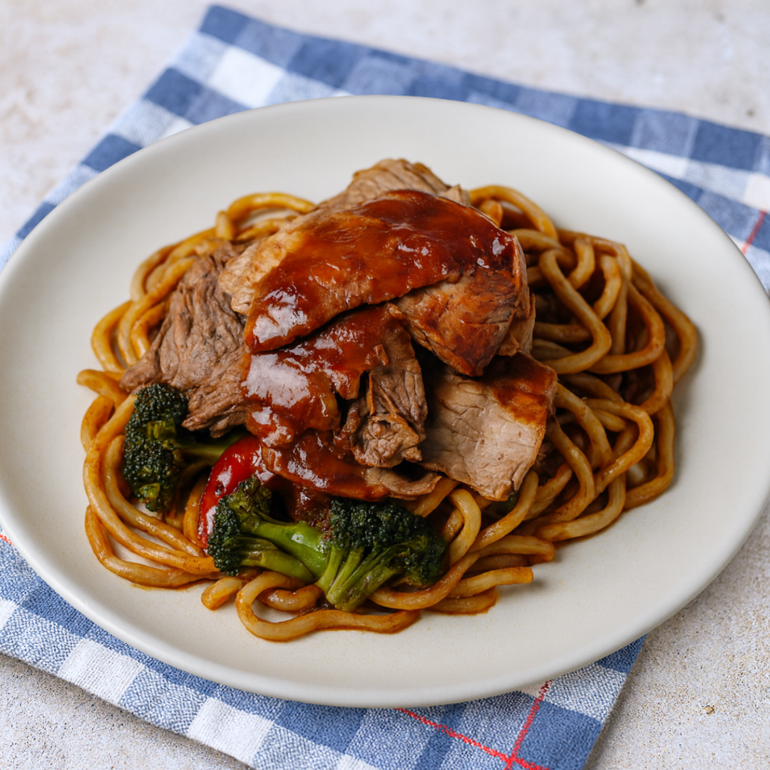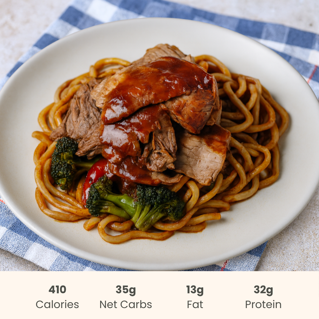 Tender Angus beef stir-fried with fresh vegetables in a sweet and savoury bulgogi-style sauce, all served over perfectly chewy rice noodles. High in protein and made with real, whole ingredients, this dish brings bold flavour and better-for-you comfort in every bite.